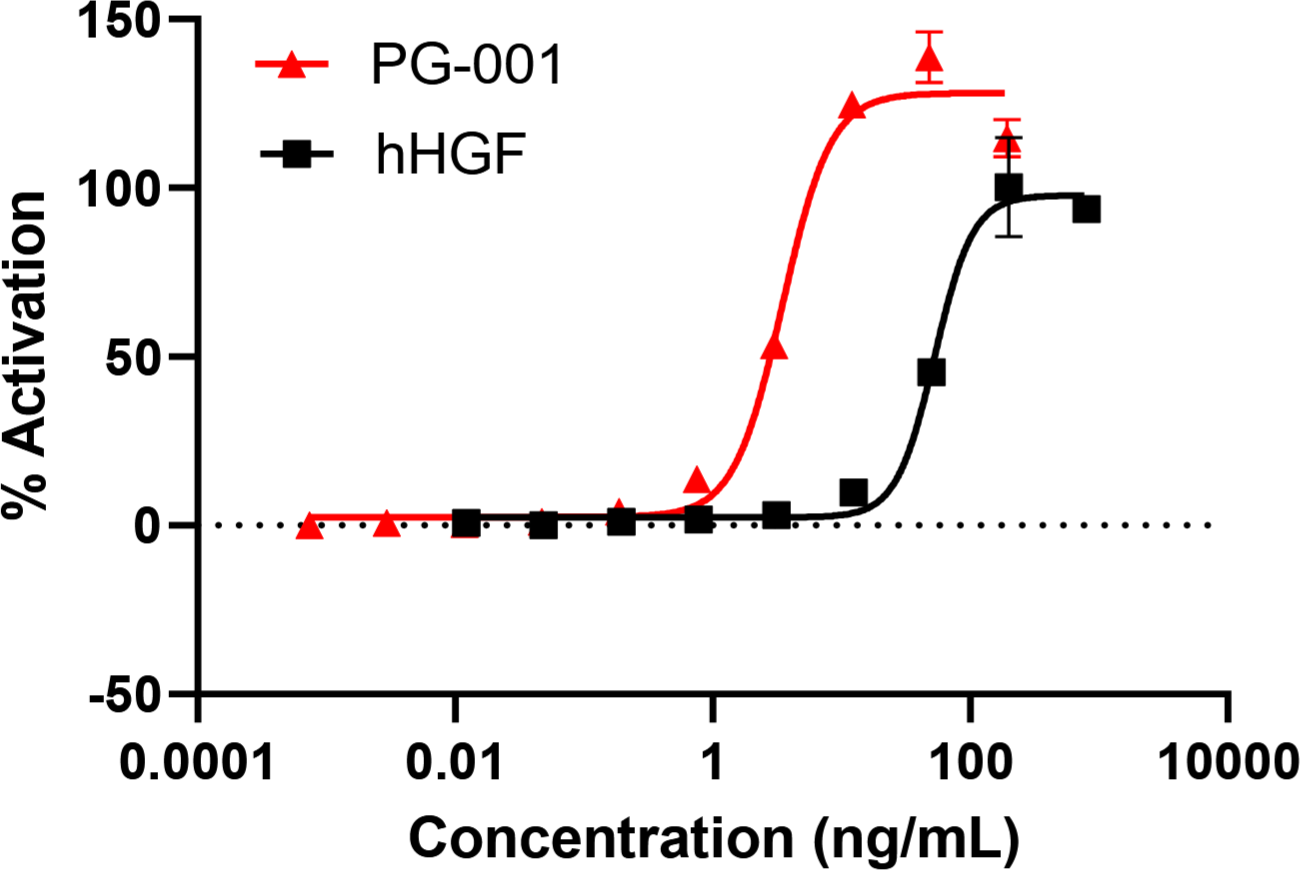 8-16 times stronger activity than the rHGF at mass conc. (ng/mL). Hepatocytes, Liver Organoids, MSCs, Skeletal muscle satellite cells, small intestinal, or epithelial cells.