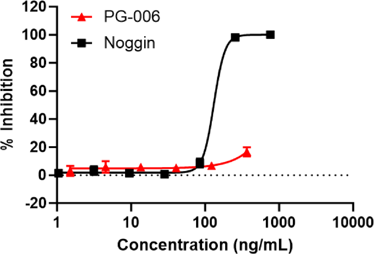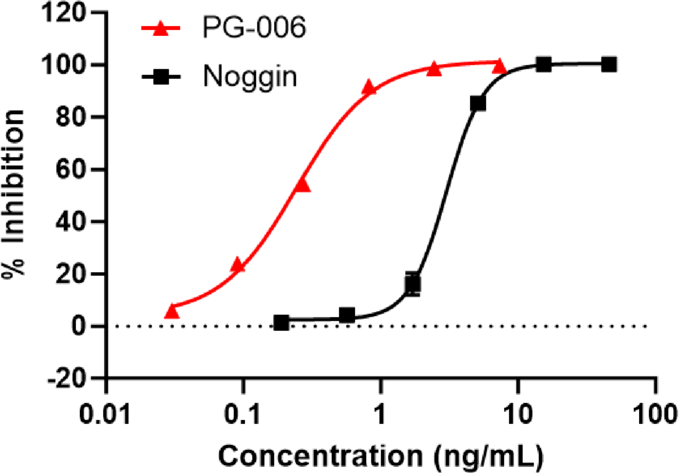 Measured by its ability to inhibit smad1 phosphorylation induced by BMP4 (2.6 ng/mL) or BMP7 (157.5 ng/mL) in A549 cell. Expected IC50 for BMP4 is ~0.3 ng/mL under this condition. Determine optimal concentrations for individual applications.